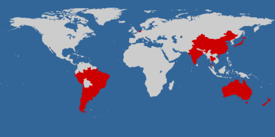 -------------------------- 追記:2006年11月5日 アルゼンチン、ウルグアイ、ブラジル、パラグアイ、チリ追加。 ボリビアが赤く塗りつぶしてくれと言っている。