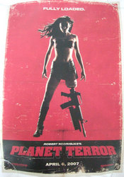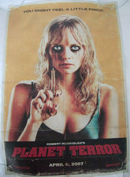 GRINDHOUSEとはエログロバイオレンス映画ばかり流す映画館の総称で、GRINDHOUSE FILM FESTIVALなるものもあるようです。そんなわけでこの映画も2本立てになっていて、タランティーノとロバート・ロドリゲスがそれぞれ監督しています。タランティーノの方は「DEATH PROOF」、ロバート・ロドリゲスは「PLANET TERROR」。